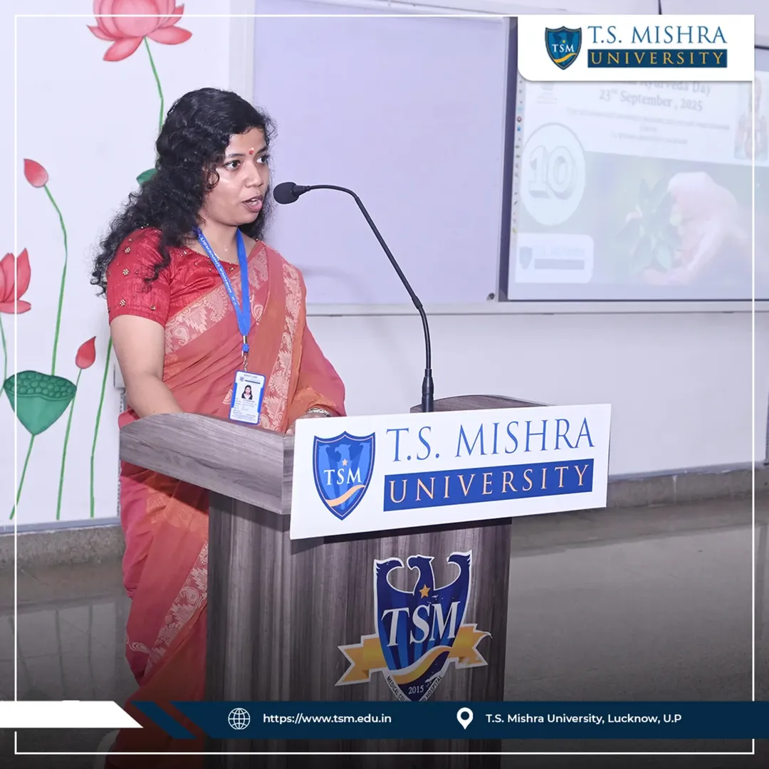 The School of Ayurveda, T.S. Mishra University celebrated the 10th National Ayurveda Day with insightful sessions by Dr. Charu Gauba, Dr. Devika Ravi, expert lectures from Dr. Harish Patnakar and Dr. C. Raghunathan Nair, along with active participation from B.Sc. Ayurveda Nursing students. The event was anchored by Dr. Aarchha Lal and concluded with a Vote of Thanks by Dr. Reshma Ravi.