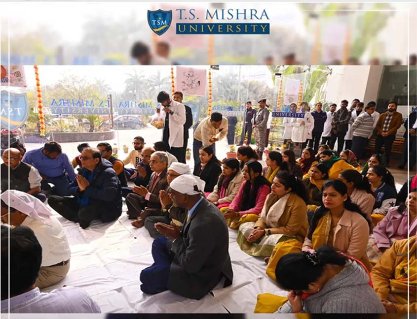 The campus was filled with devotion and calm as Saraswati Puja was observed on the occasion of Basant Panchami at T.S. Mishra University. The ritual reflected our deep respect for knowledge, learning, and wisdom, bringing students, faculty, and staff together in a serene and meaningful atmosphere.
