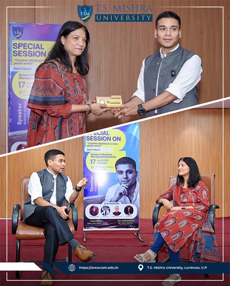 The Special Session on “Creative Thinking in a Copy-Paste World” with Mr. Rohan Agarwal at T.S. Mishra University brought students closer to real-world thinking, marketing insights, and practical communication strategies.