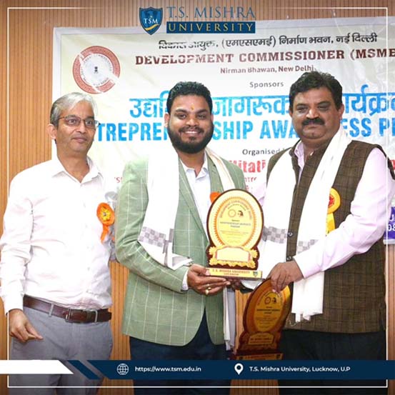 The School of Business Management successfully organized a Workshop on Entrepreneurship Awareness in collaboration with the Enterprise Facilitation Centre, Lucknow, aimed at encouraging students to explore entrepreneurial opportunities and understand the fundamentals of building sustainable ventures.
