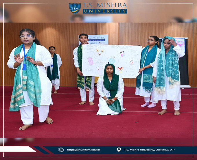 Students of College of Nursing, T.S. Mishra University participated in a Cervical Cancer Awareness Workshop organized by the OBG Department on 04 February 2026 at the Nursing Building, Amausi, Lucknow, bringing together students from M.Sc. Nursing, B. Sc. Nursing, GNM, and ANM programs to focus on awareness, prevention, and early detection of cervical cancer.