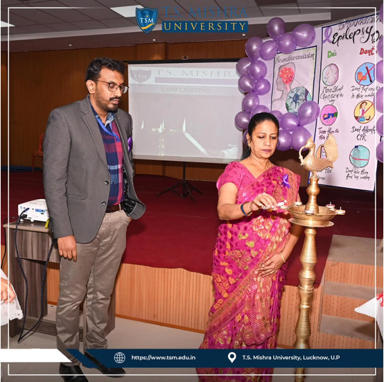 On the occasion of International Epilepsy Day, T.S. Mishra University, through its College of Nursing, organized an awareness programme themed “Turning Stories into Action” at the Multipurpose Hall, College of Nursing, Amausi, Lucknow, focusing on dispelling myths, reducing stigma, and promoting correct understanding of epilepsy and its management. The programme featured role plays, mimes, and seminar presentations conducted by B.Sc. Nursing 4th and 8th semester students, with active participation from students and faculty members of the College of Nursing and the School of Business Management, highlighting the importance of awareness, seizure first aid, and community education through student-led initiatives.